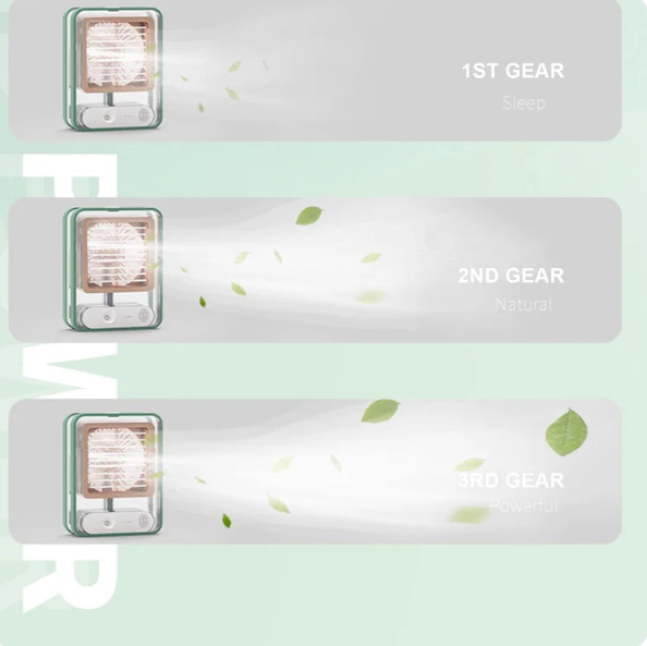 LED noćno svetlo - Ugrađene LED diode sa toplim svetlom ispod rezervoara za vodu, koji hladni ventilator čini prelepim noćnim svetlom. Sa jedinstvenim dizajnom, meka topla svetlost prolazi kroz vodu, i čine ventilator savršenom lampom za decu i bebu, ili sjajnu noćnu lampu pored kreveta za odrasle. Ventilator sa vodenim raspršivačem.